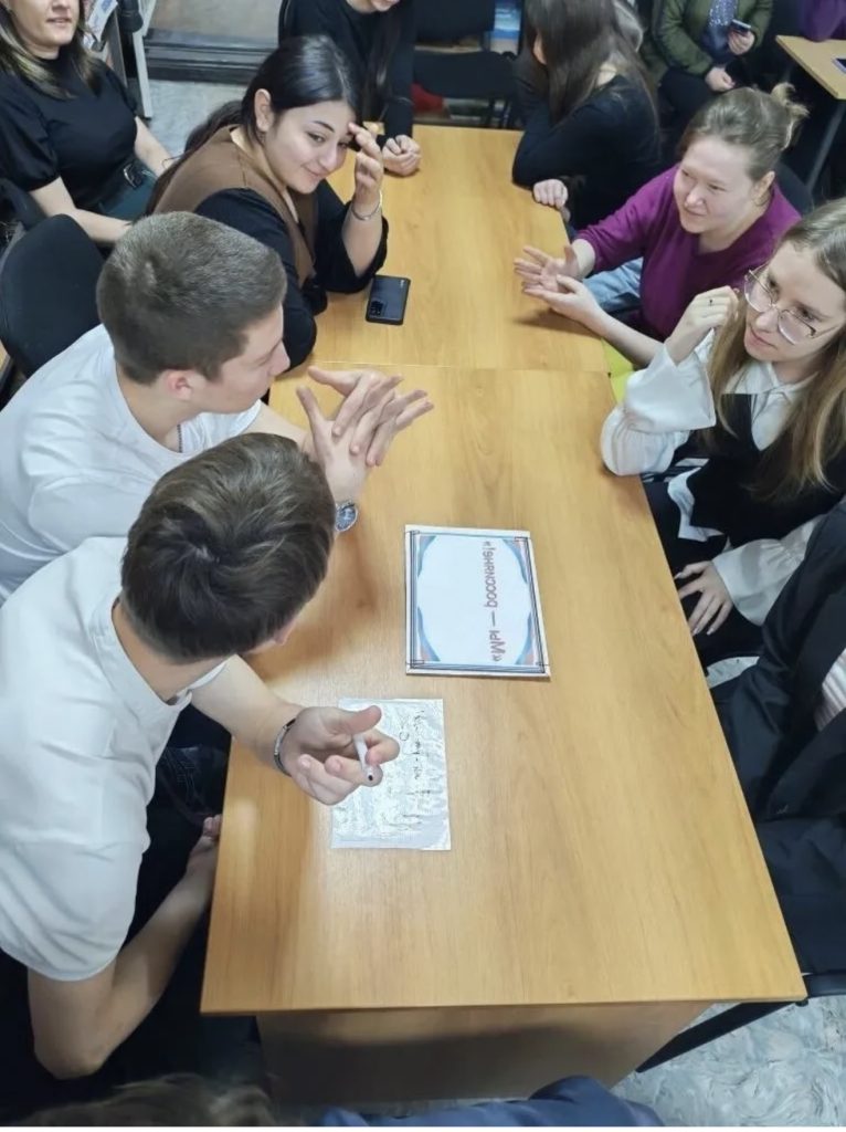 Библиотекарь абонемента Марина Викторовна Шевченко предложила гостям интерактивную игру, где нужно было расшифровать названия регионов в ребусах, узнать по фотографиям традиционные костюмы и определить, какому народу принадлежит то или иное блюдо. Азарт, смех и моменты открытий — команды соревновались не только в знаниях, но и в скорости.