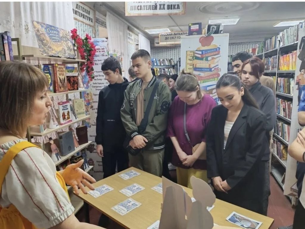 После серьёзного разговора гости погрузились в мир народного творчества. Библиотекарь читального зала Татьяна Геннадьевна Кузьменко провела литературную игру «Кулинарный марафон по сказкам народов России». Участники угадывали, какое блюдо могло бы появиться в сказках «Морозко», «Колобок» или легендах народов Кавказа, составляли меню для сказочных героев и даже «готовили» метафорические угощения по описанию.