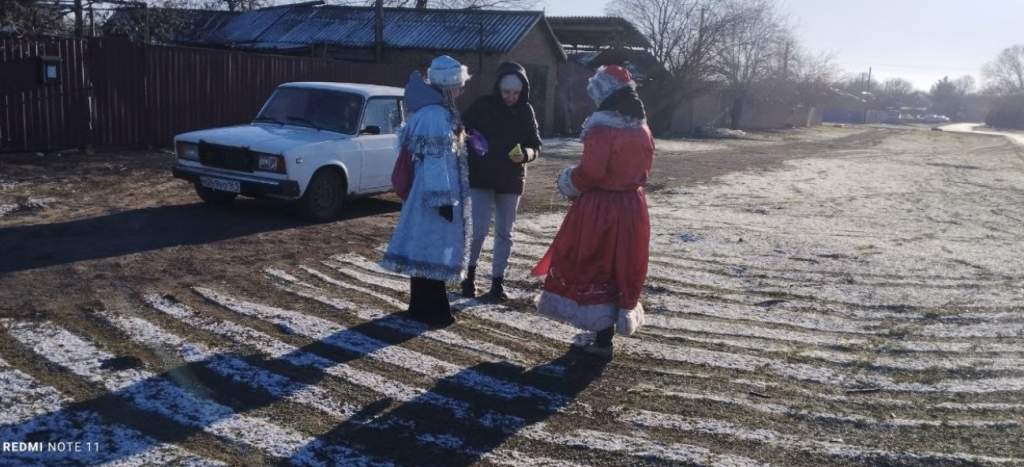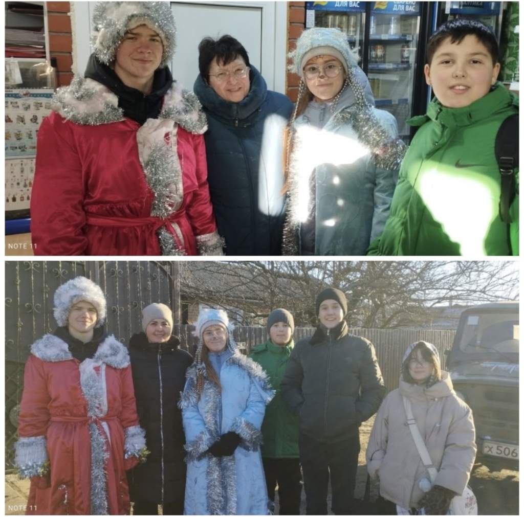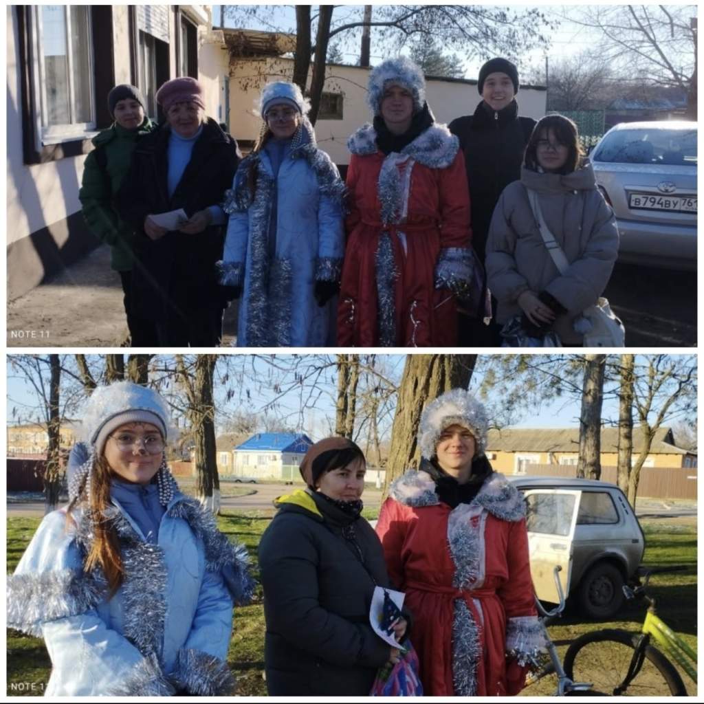 Преобразившись в сказочные образы Деда Мороза и очаровательной Снегурочки, юные волшебники отправились дарить праздничное настроение тем, кто трудится в новогодние дни и просто жителям родного хутора. В их руках трепетно мерцали яркие праздничные открытки и миниатюрные елочки, созданные с любовью и заботой своими руками. Каждый штрих, каждая блестка хранили в себе тепло детских сердец и искреннее желание поделиться новогодней радостью.