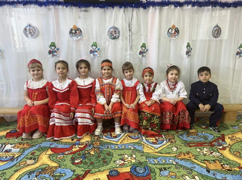 Маленькие артисты, наряженные в яркие народные костюмы и сказочные образы, с головой окунулись в мир русских традиций. Они пели задорные народные песни, водили хороводы, играли в старинные русские игры и даже пробовали себя в гадании!