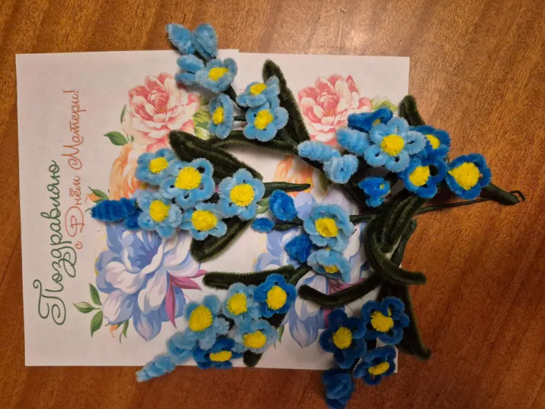 Участницы встречи не только познакомились с историей праздника, вспомнив пословицы, поговорки, песни и стихи о матерях, но и смогли проявить свои творческие способности. Педагог дополнительного образования Марина Владимировна Еланская провела для собравшихся мастер-класс по изготовлению букетиков незабудок из синельной проволоки – трогательного символа Дня матери.