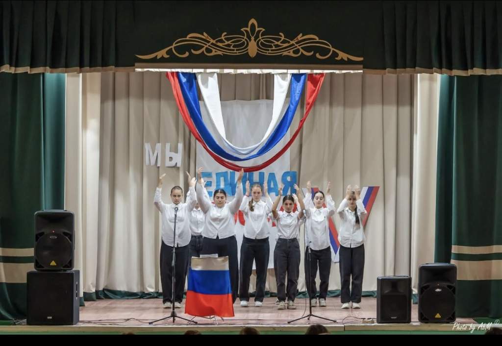 Концерт начался с торжественного гимна Российской Федерации, задав тон мероприятию. Зал, украшенный триколором, наполнился атмосферой тепла и гордости. Участники представили разнообразную программу, где патриотические песни о России и её единстве звучали особенно проникновенно.