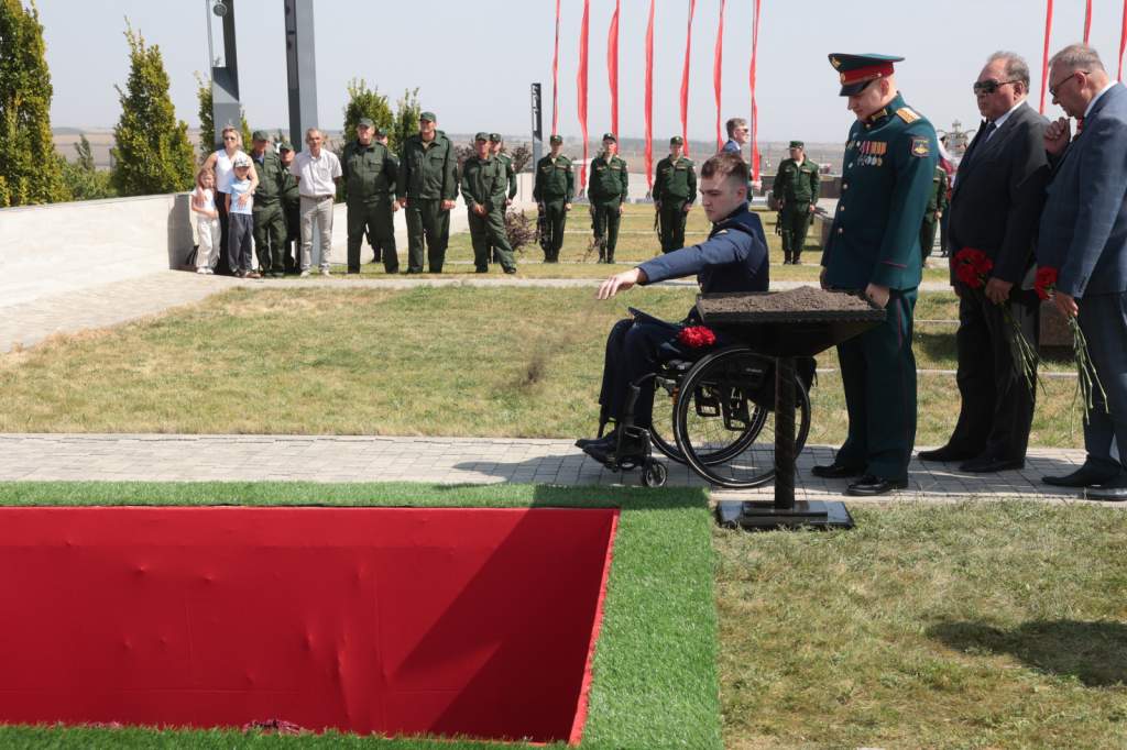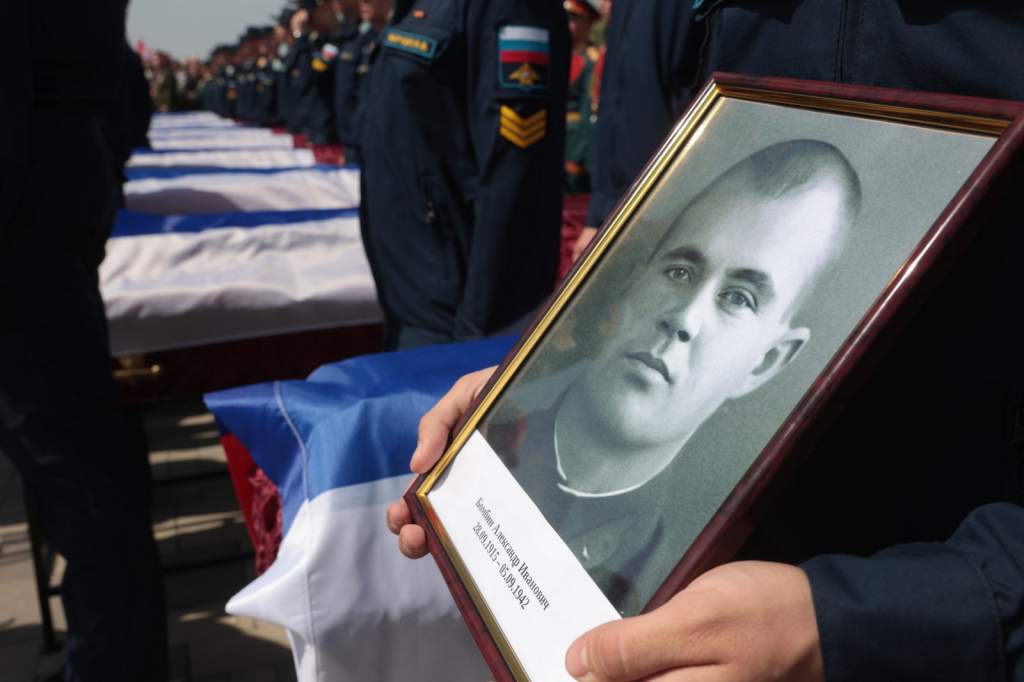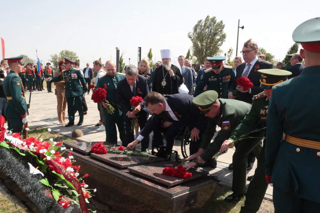 «На Аллее Памяти покоятся 582 бойца, удалось восстановить имена 32 из них. Сегодня еще 101 солдат обрел здесь покой, имя одного из них установлено. Это лейтенант, командир взвода курсантов Сталинградского военно-политического училища Александр Иванович Бомбин, уроженец Неклиновского района. Останки воина поисковый отряд нашел в местах боев Сталинградской битвы. Имена других 100 героев пока неизвестны, но мы помним их подвиг. Вечная память и слава павшим защитникам Отечества!», — сказал Юрий Борисович.