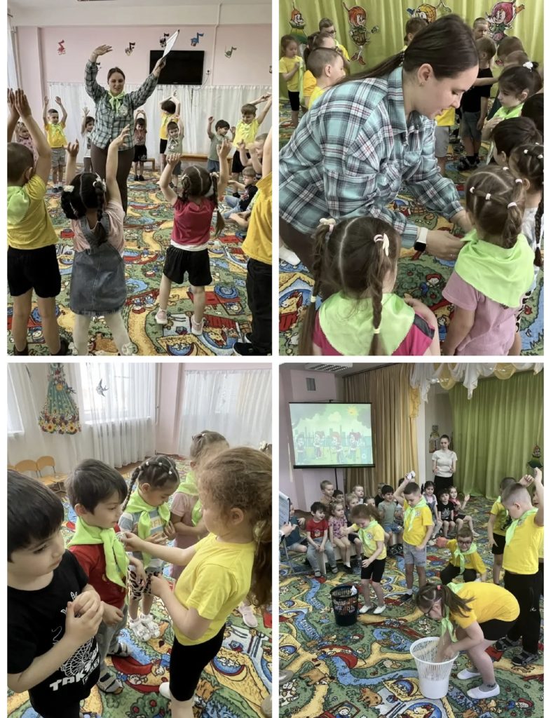 - Устроили подвижные состязания «Собери мусор и погрузи его» и «Земля, вода, огонь, воздух».