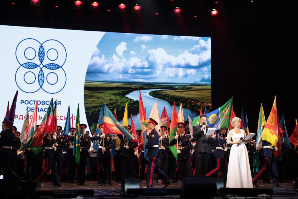 Приветствие от председателя Государственной Думы Вячеслава Володина зачитал Виктор Водолацкий. В нем подчеркивался вклад региона в промышленность, сельское хозяйство и укрепление продовольственной безопасности страны, а также отмечались трудолюбие и сильный дух жителей Ростовской области.