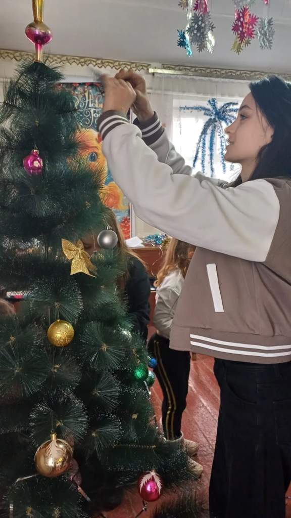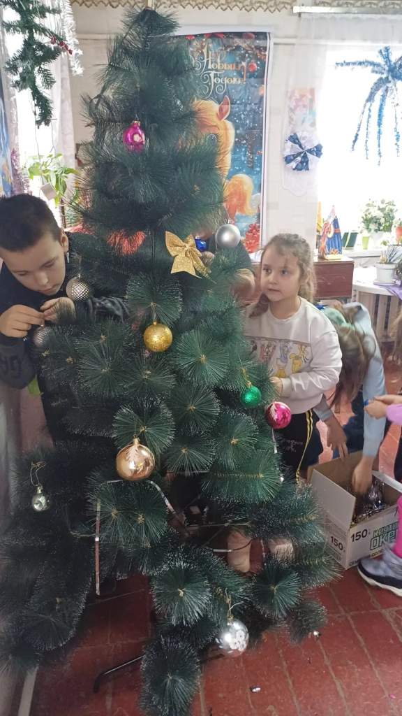 В завершение мероприятия, создавая праздничное настроение, дети вместе нарядили новогоднюю елку.