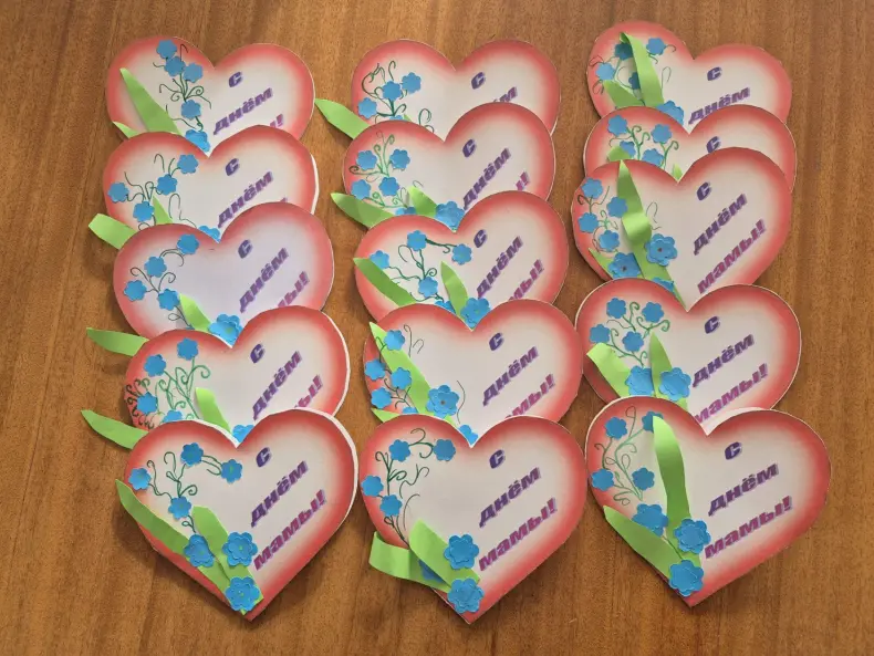 Вдохновленные этой идеей, ребята с энтузиазмом принялись за изготовление открыток. Несмотря на простые материалы и технику, каждая работа получилась яркой, неповторимой и наполненной искренними чувствами. Юные мастера вложили в свои творения всю любовь и благодарность матерям.