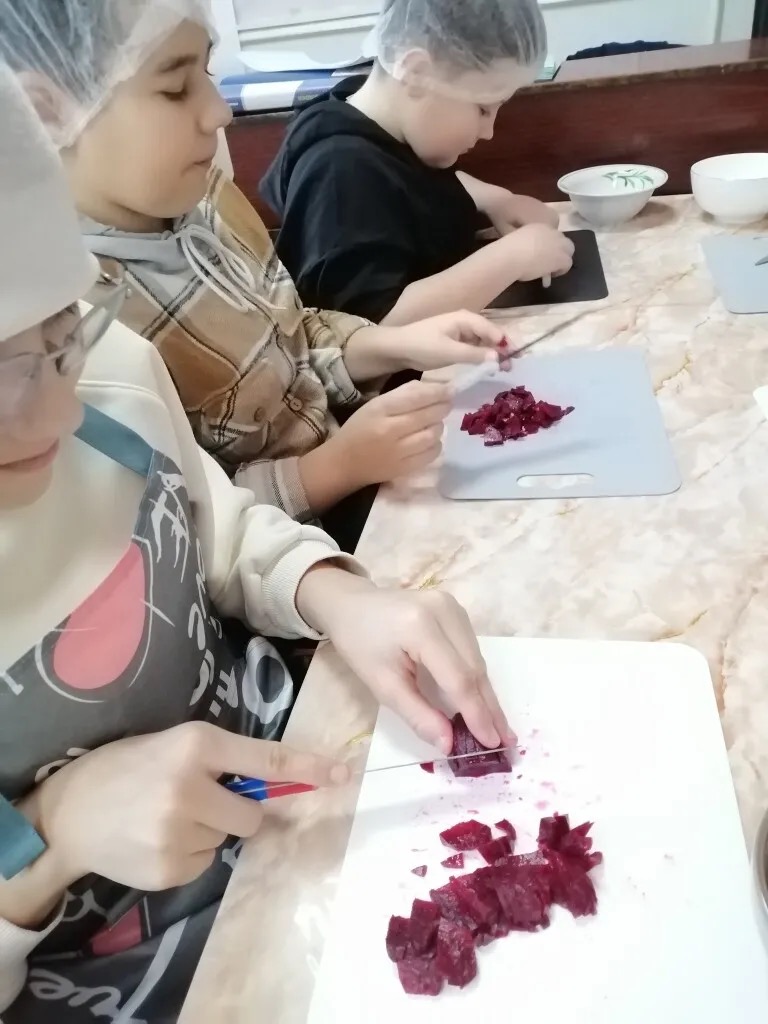 Практическая часть занятия была посвящена приготовлению салата «Свекольный». Ребята с удовольствием чистили, резали и смешивали ингредиенты, постигая азы кулинарного мастерства. Венцом мероприятия стала дегустация приготовленного салата и обсуждение дальнейших планов кружка.