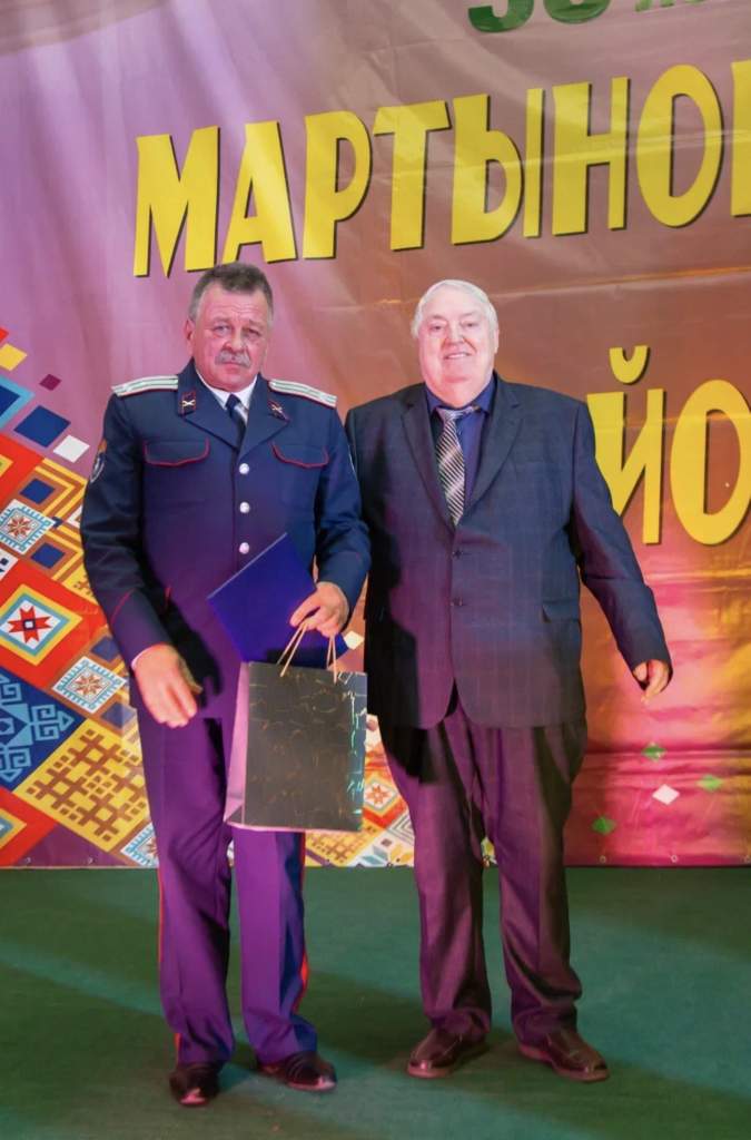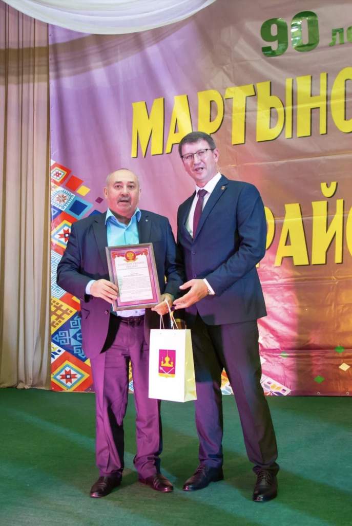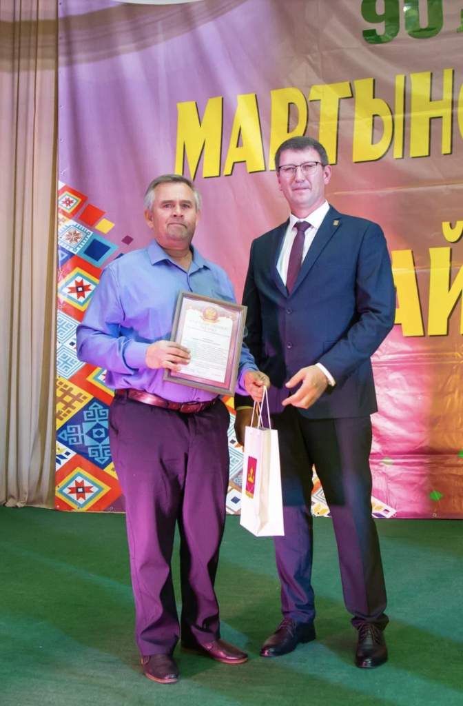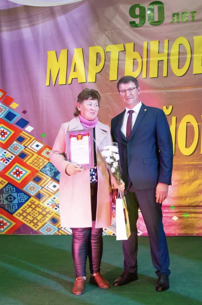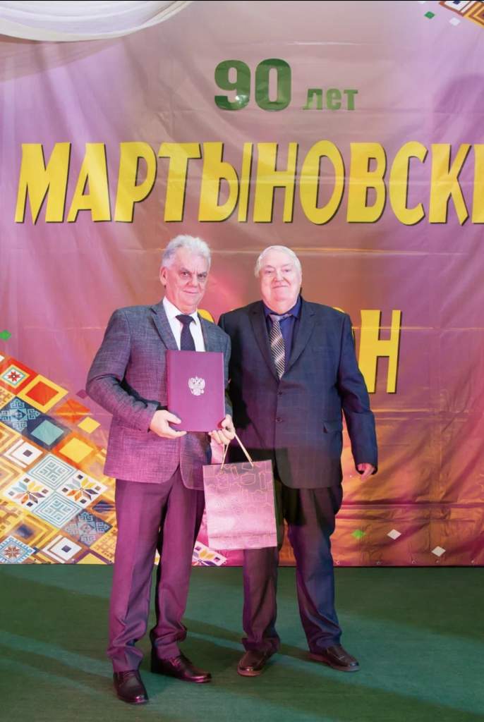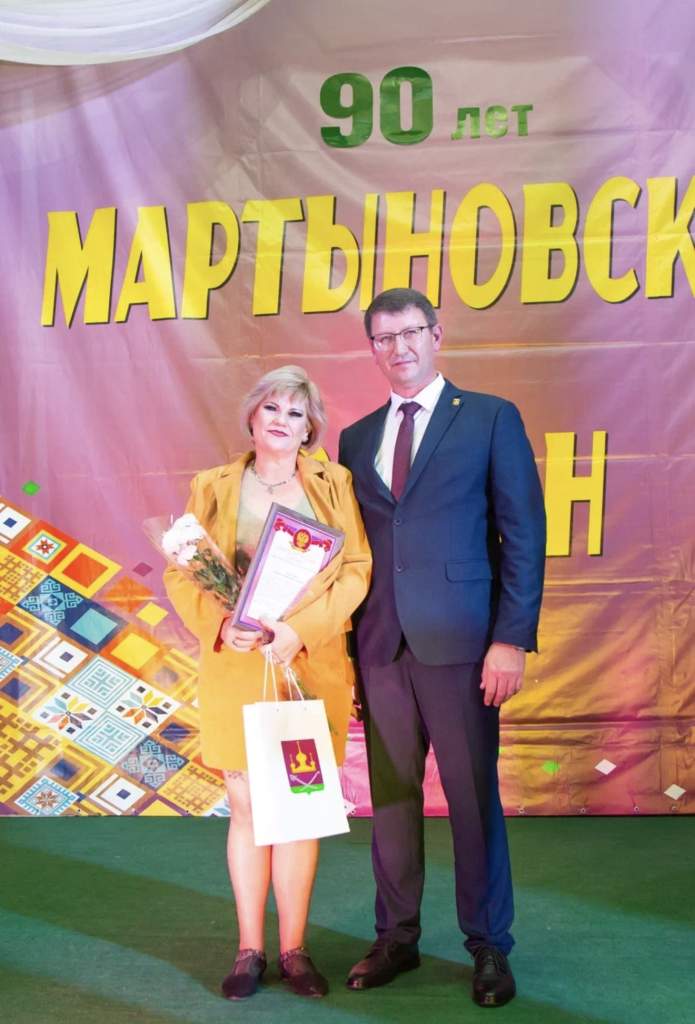 Благодарственные письма главы Администрации Мартыновского района «За многолетний добросовестный труд, личный вклад в социально-экономическое развитие Мартыновского района и в связи с празднованием 90- летнего юбилея со дня образования Мартыновского района» награждены: Христенко В. Г. – пенсионер, ровесник Мартыновского района, родился в 1935 году; Игришин В.А. – председатель Собрания депутатов — глава Большеорловского сельского поселения; Федосеева В.П. – пенсионер, ранее занимала должность председателя Большеорловского сельского совета; Рязанова М. В. — ведущий специалист администрации Комаровского сельского поселения; Мазницына Л.Н. – пенсионер, ранее занимала должность финансиста в администрации Новоселовского сельского поселения; Воробьева Е.Н. — директор ГБУ СОН Ростовской области «Социально-реабилитационный центр для несовершеннолетних сл. Большая Мартыновка»; Шевченко А.П. — начальник Управления социальной защиты населения Администрации Мартыновского района; Астахов А. А. — слесарь по эксплуатации и ремонту подземных газопроводов-4 разряда, филиала ПАО «Газпром газораспределение Ростов-на-Дону» в г.Семикаракорске Мартыновский районный газовый участок; Булько А. А. — электромонтер по эксплуатации распределительных сетей 5 разряда Мартыновского РЭС производственного отделения «Восточные электрические сети» филиала ПАО «Россети Юг»– «Ростовэнерго»; Парасоцкий А. Г. — главный инженер МУП ЖКХ «Мартыновское»; Переверзев А. В. — начальник участка МУП ЖКХ «Мартыновское»; Котелевская Н. А. – ведущий инспектор центра занятости населения Мартыновского района; Лозина М. А. – социальный работник муниципального бюджетного учреждения «Центра социального обслуживания граждан пожилого возраста и инвалидов» Мартыновского района; Василевич Е. П. — социальный работник муниципального бюджетного учреждения «Центра социального обслуживания граждан пожилого возраста и инвалидов» Мартыновского района; Алферов В. И. – пенсионер, ранее занимал должность аккомпаниатора МАУК «КДЦ-Южный»; Краснощеков И. И. — преподаватель Детской школы искусств Мартыновского района; Савченко В. П. – пенсионер, ранее занимал должность концертмейстера-аккомпаниатора народного хора «Сельская забава»; Репатов Х. Р. – инспектор — методист Муниципального казенного учреждения «Центра финансово-хозяйственного и организационно-методического обеспечения Мартыновского района»; Корпусенко Н. Н. – тренер-преподаватель Муниципального бюджетного образовательного учреждения дополнительного образования спортивной школы Мартыновского района и учитель физической культуры Муниципального бюджетного образовательного учреждения средней образовательной школы № 1 сл.Большая Мартыновка; Тимохов С. Н. — индивидуальный предприниматель глава крестьянского(фермерского)хозяйства Тимохов С.Н.; Рябухин Ю. Г. — председатель кооперативного хозяйства «Успех Агро»; Никульченко Ю. В. — генеральный директор АО «Антра- цит-А» Домогатский Д. В. — генеральный директор ООО «Комаровское»; Дмитренко С. М. — пенсионер, ранее исполнительный директор АО «Цимлянский»; Бундуки М. И. — директор ООО «Неман»; Костенков А. М. — исполнительный директор ИП Ермоченко В.Н.; Шишканов Н. И. — директор ООО «Сириус»; Трегубова Т. Л. — глава крестьянского хозяйства «Ника» и дирек- 