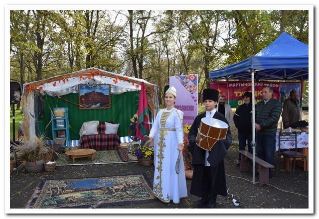 На празднике развернулась яркая выставка, демонстрирующая национальные культуры, быт, кухни и ремесла народов района, фрагменты национальных обрядов. Гости смогли насладиться выставками декоративно-прикладного искусства, экспозициями музея и библиотеки, а также работами юных талантов. Для любителей спорта работали спортивные площадки.