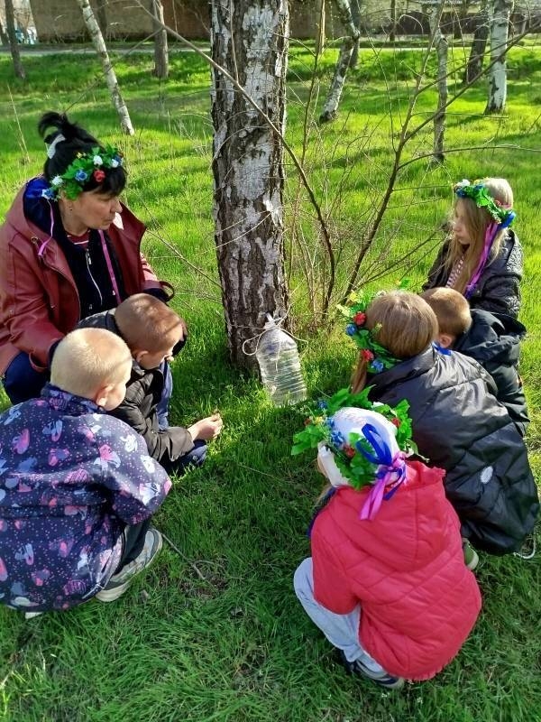 Незнакомый листик, найденный гриб, сладкий березовый сок, даже неожиданная встреча с местной «козой-дерезой» – всё это вызывало искренний восторг. Дети с любопытством рассматривали белоствольные березы – настоящие символы России, наблюдая за их пробуждением: набухающими почками и нежной зеленью молодых листьев. Они водили хороводы, играли в веселые игры и даже обнимали деревья, черпая их живительную энергию.